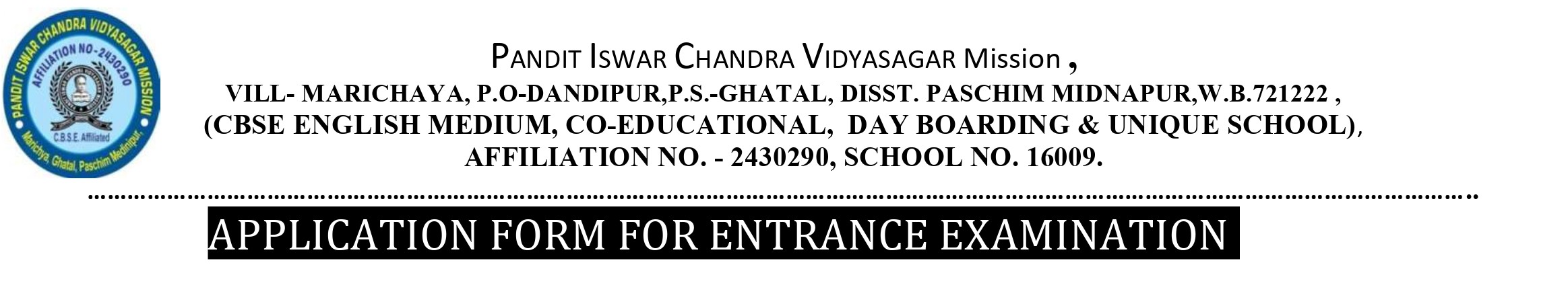 • APPLICATION FORM FOR ENTRANCE EXAMINATION
